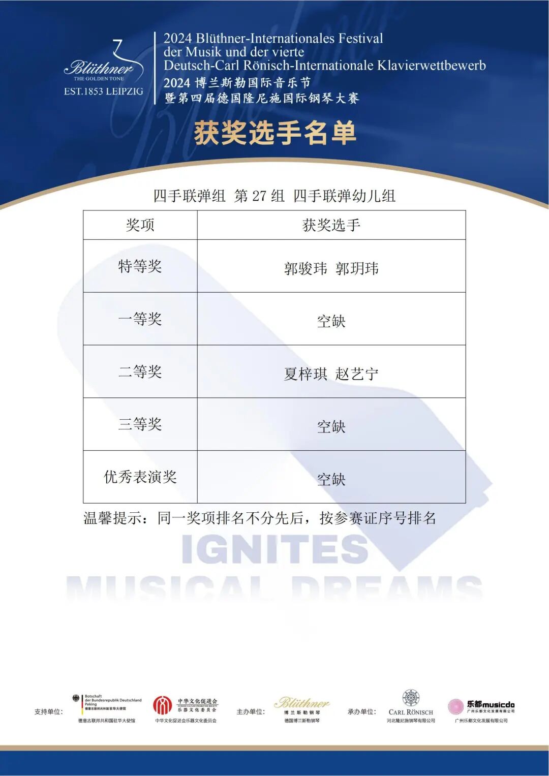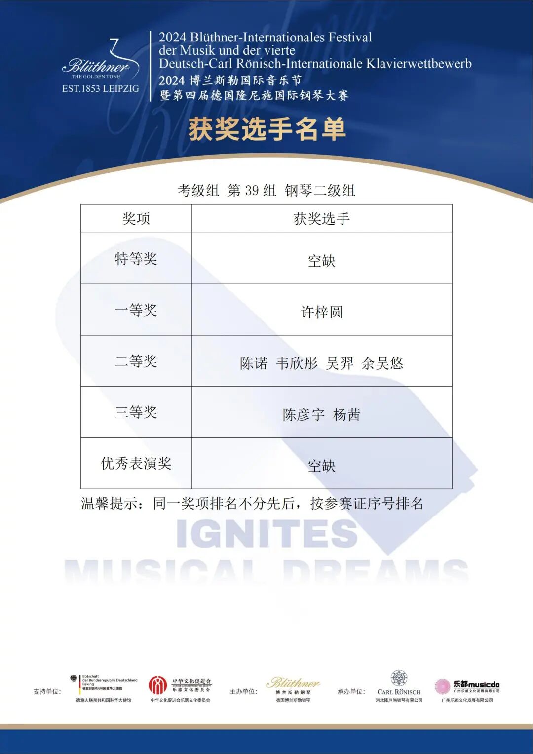 在刚刚结束的重量级专业钢琴比赛——2024博兰斯勒国际音乐节 暨第四届德国隆尼施国际钢琴大赛 全国总决赛中,大易琴行学员李晓谦、胡恬语从汇集全国各地高手的赛场上脱颖而出,分别荣获一等奖、二等奖,在此热烈祝贺两位学员获得可喜的成绩!